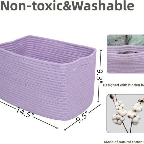 Cotton Rope storage Basket Bins Woven Basket for Organizing Shelves Rectangle Decorative Baskets For storage Clothes Toys Books Towels Square Wicker Nursery basket organizer 3 pack purple lavender