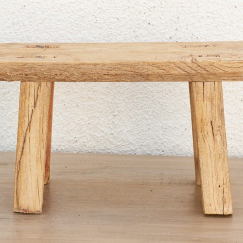 Crafted from authentic reclaimed elm wood, this stool carries the whispers of a past life, with every grain, knot, and imperfection telling its own unique story. The construction speaks volumes about traditional craftsmanship, featuring sturdy dovetail construction and robust double-joint legs that ensure remarkable durability. A beautiful bleached, semi-oxidized finish enhances the natural character of the elm, lending this stool a weathered, sun-kissed appearance that’s incredibly inviting.