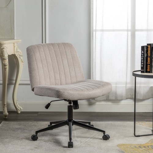 Cross Legged Office Chair, Wide Comfty Desk Chair, Vanity Home Chair No Wheels Armless Computer Task Chair, Swivel And Height Adjustable – Beige