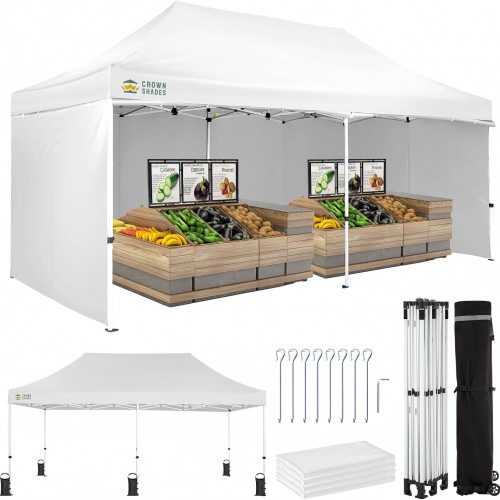 CROWN SHADES 10X10 Comercial Instant Canopy Pop Up Tent with Center Lock (10×10 with 4 Sidewalls, Sky Blue)