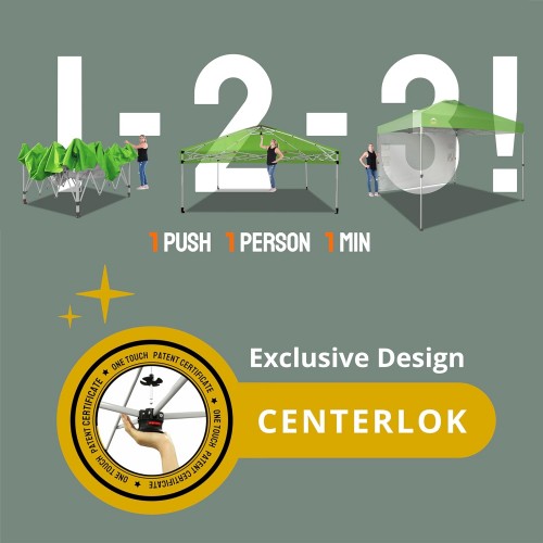 CROWN SHADES 10×10 Pop Up Canopy with 1 Side Wall – Beach Tent with One Push Setup – Outdoor Sun Shade for Events, Parties, Camping – Gazebo with STO-N-Go Cover Bag (Green)