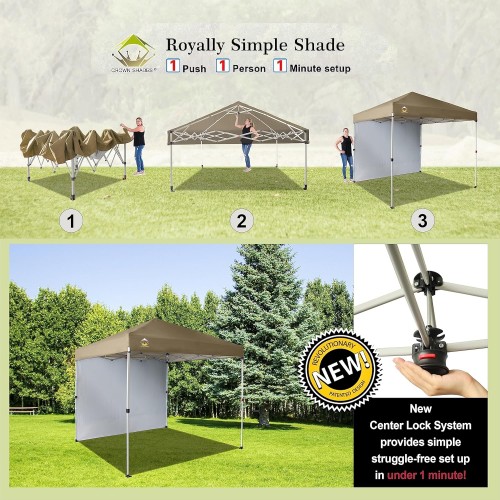 CROWN SHADES 8×8 Pop Up Canopy with 1 Side Wall – Beach Tent with One Push Setup – Outdoor Sun Shade for Events, Parties, Camping – Gazebo with STO-N-Go Cover Bag (Beige)