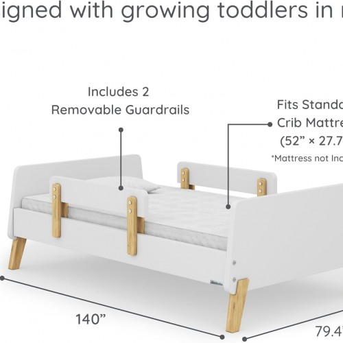 Dadada Muse Toddler Bed with 2 Removable Safety Rails. Low Profile Montessori Bed for Kids. Sturdy Solid Wood Frame, Fits Standard Crib Mattress, Easy to Assemble, Toddler Bed for Boys & Girls – White