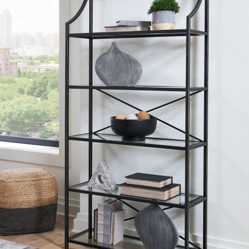 This bookcase proves that traditional designs are simply timeless. Five spacious glass shelves offer plenty of room to display today’s meaningful mementos and awesome accessories. With a classic antiqued black finish, it’s just got that ageless appeal.