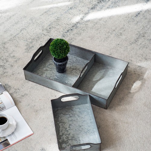 Decorative Galvanized Nesting Trays (Set of 3) – Gray