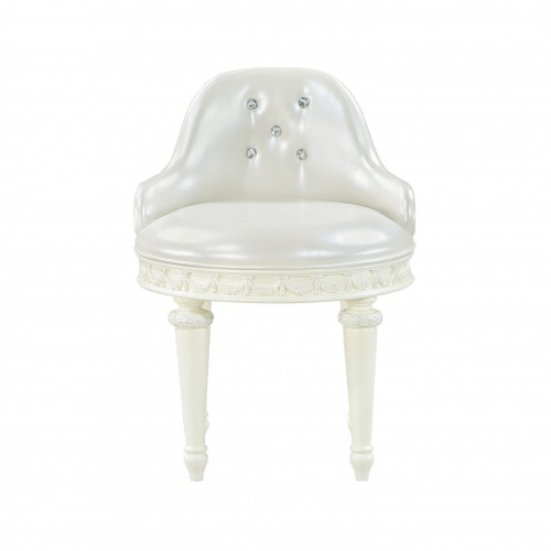 - Elegant Design: The Dorothy Ivory Finish Vanity Chair features a round armless design with a low backrest, offering a sophisticated look that is enhanced by crystal-like button tufting on the inside backrest.