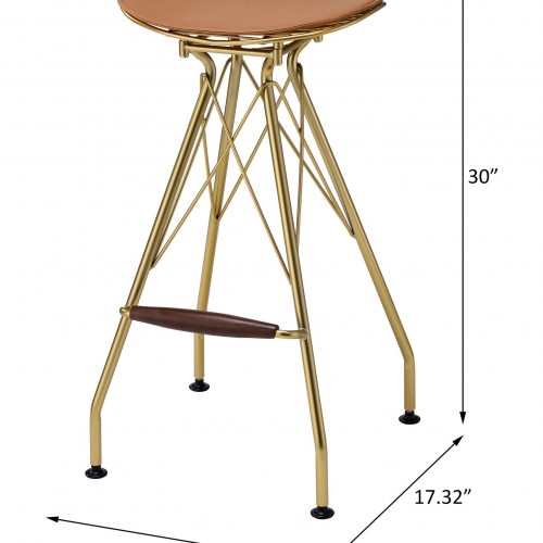 Dragea – Bar Stool (Set of 2) – Whiskey Synthetic Leather & Gold