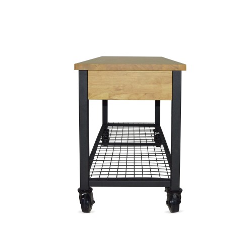 A highly versatile, contemporary, and mobile workbench that is the perfect piece of furniture for your home, garage, or workshop. A modern take on a traditional industrial workbench, Rove brings an edge to any space and will stand out no matter where it is placed due to its robust build. A unit that is meticulously made which highlights wood grains, knots, some color variations and distress marks which are key elements of an industrial workbench. Rove features a tough wood top coated in a clear matte sheen and durable metal frame that is powder coated in a scratch resistant black grit finish. 3 full-sized drawers will help organize and store items and each drawer is accentuated with smooth and sleek easy to grasp metal handle. Equipped with a multi-purpose metal rack will further assist in keeping your spaces neat and tidy.