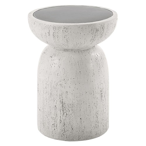 Introduce our Dylana round accent table brings a touch of modern elegance with its fixed table top and faux concrete finish in a nature gray hue. Perfect for contemporary spaces, its minimalist design adds sophistication to any room, making it a stylish and functional addition to your home decor.