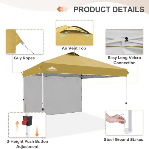 - REMOVABLE SIDEWALL: This outdoor canopy includes one detachable sidewall that secures to the frame with durable, extended Velcro straps. The 150D silver coated oxford canopy top is water resistant, offers UV protection, and meets CPAI-84 fire resistance standards. Enjoy reliable sun shelter and weather protection with heavy duty fabric designed for comfort and safety.