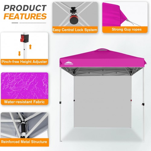 - EASY SETUP: This easy setup pop up canopy tent features the Peak Push system, a patented canopy center lock. The portable canopy requires no tools and easily opens and closes from the center in seconds. Its unique canopy tent center lock enables a quick, one person setup, letting you maximize outdoor time with minimal effort.