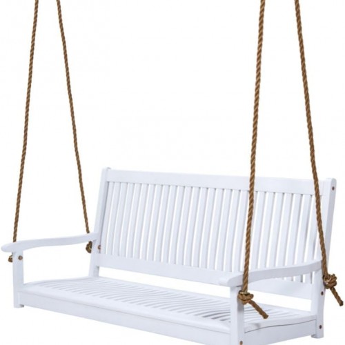 East Green Hayden 4 Foot White Porch Swing – Outdoor Bench Swing Crafted from Naturally Weather-Resistant Acacia Wood