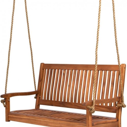 East Green Hayden 5 Foot Wooden Porch Swing in Natural Oil Finish – Outdoor Bench Swing Crafted from Naturally Weather-Resistant Acacia Wood