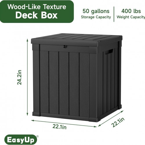 - ENHANCED SAFETY FEATURES – The EasyUp storage box features a hydraulic rod that allows for smooth lid opening and closing, reducing the risk of accidental pinching. The built-in locking mechanism adds an extra layer of security, making it ideal for safeguarding outdoor valuables