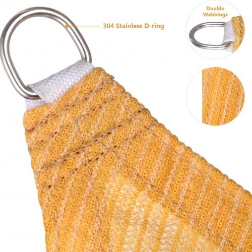 - High Quality Guarantee: Our shade sail made from non-recycled HDPE (high-density polyethylene) 180gsm, industrial cross-weaving for superior support & long-lasting durability. Ready to hoist upon sturdy connections at all four corners. Easy to install, very thick & durably-enforced webbing. Our shade sail includes 304 Stainless Steel D-rings stitched seamlessly into its corners & comes with nylon ropes for convenience, length & width are measured from D-ring to D-ring
