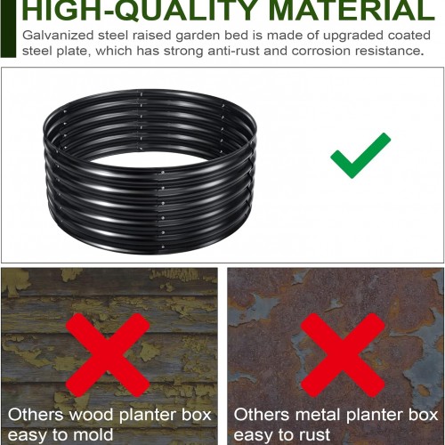 - Heavy-Duty Galvanized Steel: The 17″ Tall, 42″ Round Galvanized Raised Garden Bed Kit is made with three-in-one layering consists of a durable steel core, followed by a protective galvanized layer, and topped with a robust colored coating, enabling it to withstand prolonged exposure to elements like sunlight, rain, and snow.