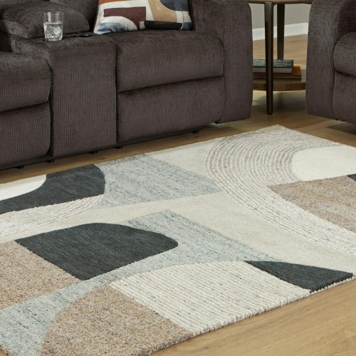 Take a casual approach to mod aesthetics with this rug. Shades of neutral come together in a dynamic abstract pattern, with the high-low construction incorporating eye-catching dimension. Adding a soft feel underfoot, this rug is such a chic combination of style and cozy function.