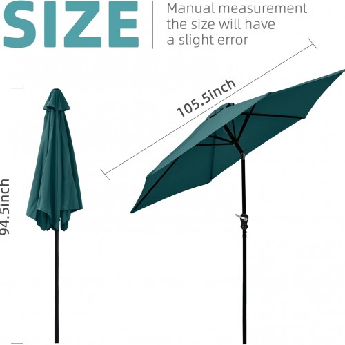 Elevon 9FT Ocean Blue Outdoor Patio Umbrella with Push Button Tilt and Crank, Beach Umbrella for Sun Shades, Market Umbrella with 6 Sturdy Metal Ribs, UV Resistant Waterproof for Garden