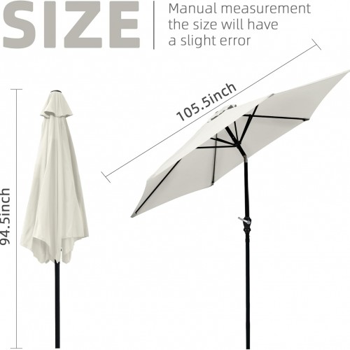 Elevon 9FT White Outdoor Patio Umbrella with Push Button Tilt and Crank, Beach Umbrella for Sun Shades, Market Umbrella with 6 Sturdy Metal Ribs, UV Resistant Waterproof for Garden