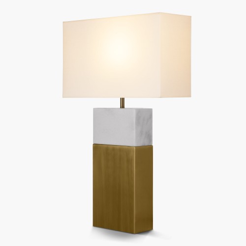 A sleek geometric silhouette is elevated via smooth marble and contrasting brushed brass to create a beautifully minimal lighting option.