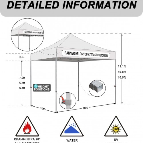 - 3-HEIGHT SETTINGS:Thumb button height adjuster for three different height settings, allow you to choose the height that meets your needs.Three height positions,clearance height from-peak height from 10.5ft,10.8ft to 11.1ft.