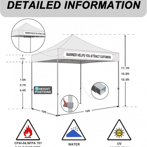 - HEAVY-DURY TOP: CPAI-84,NFPA 701 & ULC S109 fire retardant certificated polyester PU coated to block about 99% UV rays.Stitching lines are all seam sealed to prevent water penetrate from seames to make our canopy tent waterproof.Eurmax commercial canopy tent suitable for both sunny and rainy days.