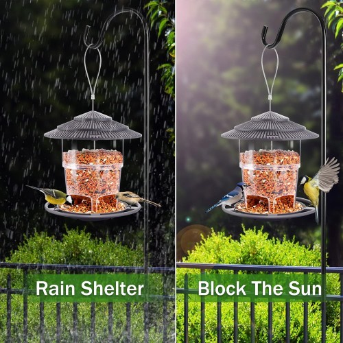 - Keep the Food Safe: The metal steel wire has a strong load-bearing capacity. Locks on top of feeder keep lid tightly closed, protecting bird feed from squirrels