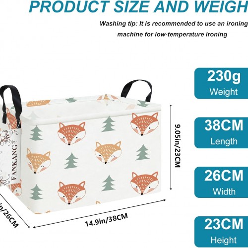 FANKANG Storage Bins, Nursery Hamper Canvas Laundry Basket Foldable with Waterproof PE Coating Large Storage Baskets for Kids Boys and Girls, Office, Bedroom, Clothes,Toys(Rec-Fox )