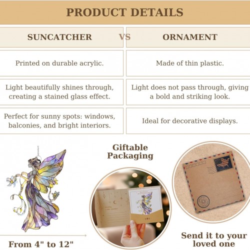 Flower Fairy Acrylic Suncatcher Stained Glass Effect Window Car Hanging Christmas Ornament Indoor Outdoor Decor Garden Sun Catcher Panel Gifts for Fairy Tale Lover for Women Mom Grandma