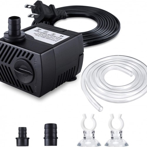 - MULTI-OCCASIONS–The fountain pump can make circulation to your tank and give your lovely fish a near-natural environment. This submersible water pump can create water current, ideal for a medium-sized aquarium, small pond, water garden, and desktop water fountains. Perfect for backyard fountain/waterfall, aquarium, ponds, fish tank, tabletop fountains, garden statuary, patio drip irrigation system and hydroponic systems and more.
