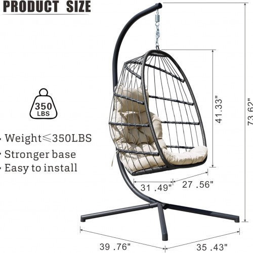 - 【Unrivaled Comfort】Indulge in luxury with our Dark Grey Hanging Egg Chair with Stand, featuring an oversized, ergonomically designed seat and plush cushion with headrest, offering unparalleled relaxation for extended periods.