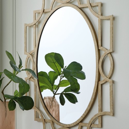 Reflect your love of casual elegance. With its antiqued goldtone finish and intricate metal frame, this accent mirror creates a relaxed yet refined sensibility. Hang it above a fireplace, vanity or entryway table to create a stunning focal point that adds dimension to your walls.