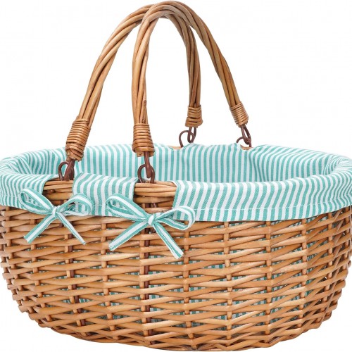 G GOOD GAIN Oval Picnic Basket with Folding Handles, Willow Hand Woven Shopping Basket, Bath Toy Kids Toy Storage Gift Packing Basket, Wicker Empty Easter Eggs and Candy Small Gift Basket. Beige