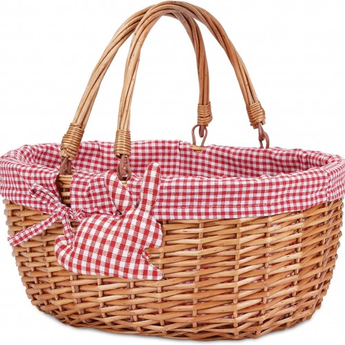 - Material: Picnic basket is made of willow. liner: USA rural style removable blue and white gingham pattern liner,it is easy to clean.
