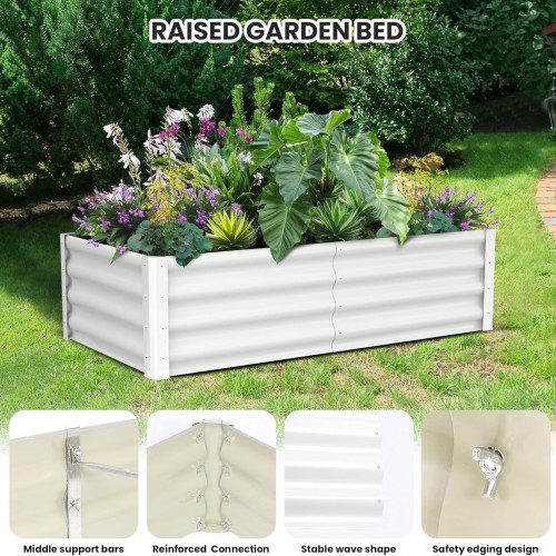 Galvanized Raised Garden Bed, 2 Pcs 6x3x1FT Outdoor Outdoor Planter Boxes with Open Base with Safety Edge and Glove, Elevated Rectangular Planting Bed for Vegetables Flowers Ground Planter, White