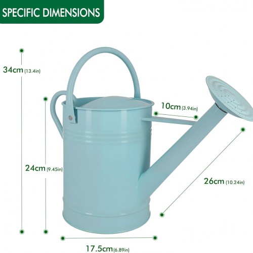 Galvanized Watering Can for Outdoor Indoor Plants, 1.7 Gallon Blue Decorative Countryside Style Water Can with Removable Spout, Metal Watering Can for Indoor Plants and Garden Flower