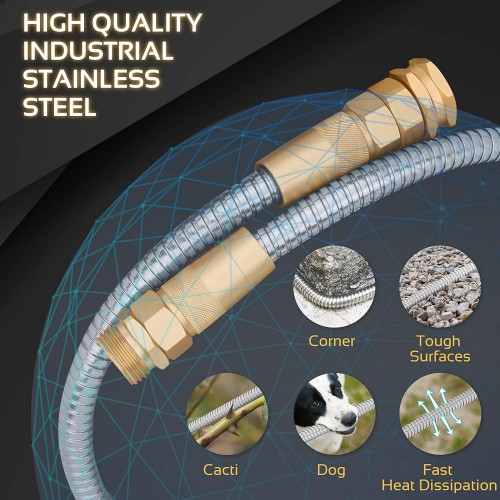 Garden Hose Metal – 25ft Heavy Duty Stainless Steel Water Hose with 8 Function Sprayer & Metal Fittings, Flexible, Lightweight, No Kink, Puncture Proof Hose for Yard, Outdoors, Rv