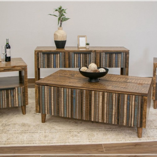 Modern and versatile collection. Full of design and color this can fit in your farmhouse home or your modern cottage in the woods. It’s endless what you will be able to do with these pieces. Multicolored hand distressed finish with blue highlights. Made of pine wood and complemented with black metal handles.