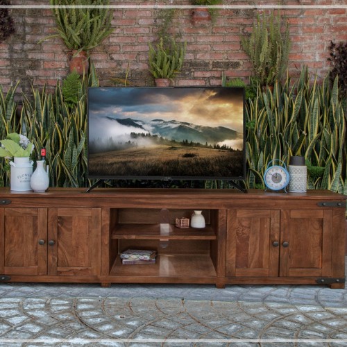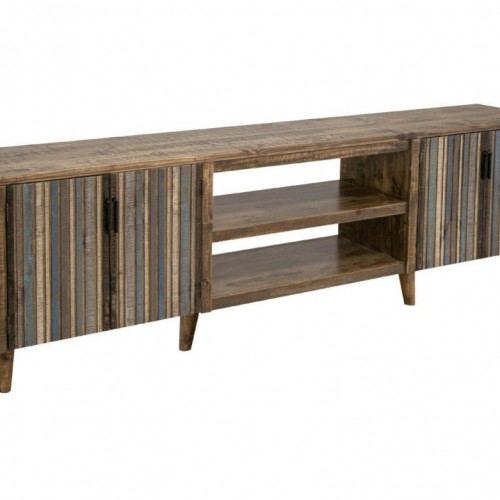Modern and versatile collection. Full of design and color this can fit in your farmhouse home or your modern cottage in the woods. It’s endless what you will be able to do with these pieces. Multicolor four door console, with lots of space. Made of pine wood and complemented with black metal handles.
