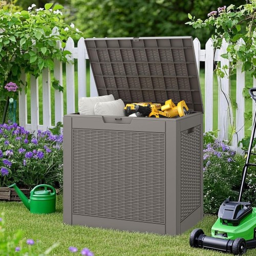 Gizoon Outdoor Potting Bench with Metal Tabletop, Outdoor Garden Patio Wooden Storage Cabinet with Adjustable Shelf, Double Doors Garden Work Bench for Backyard, Patio, Lawn – Grey