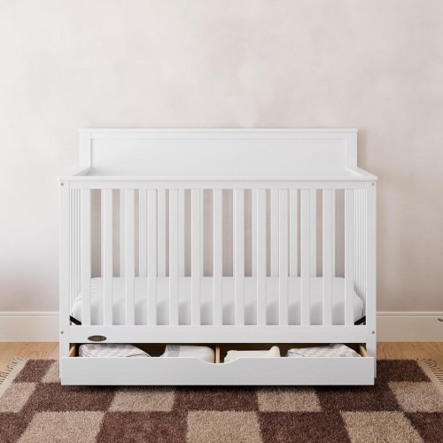- 5-IN-1 CONVERTIBLE CRIB WITH DRAWER: Converts from crib to toddler bed (compatible toddler guardrails sold separately), daybed, and full-size bed with headboard and optional footboard (compatible full-size bed conversion kit sold separately).