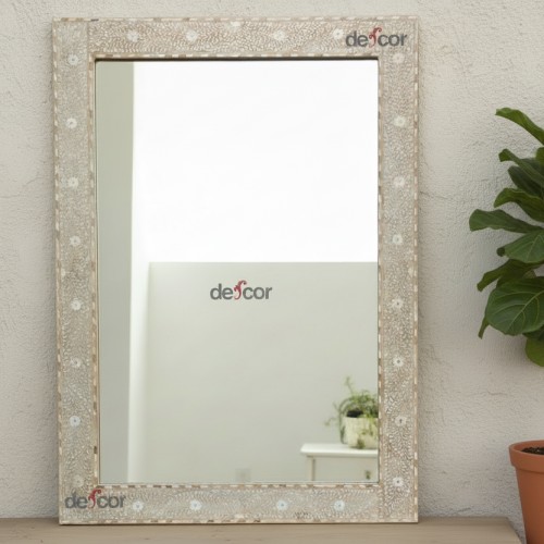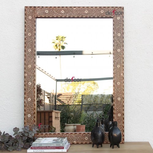 Grand Artisanal Floral Inlay Walnut Finish Mirror
