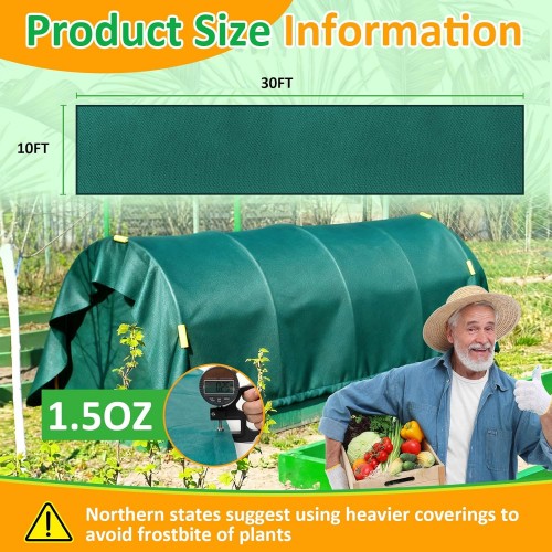 Green Plant Covers Freeze Protection, 10 x 30 ft – 1.5 oz/yd² Frost Cloths for Outdoor Plants, Tree Covers Freeze Protection, Winter Garden Blanket, Sun Cover for Plants for Greenhouse, Vegetables