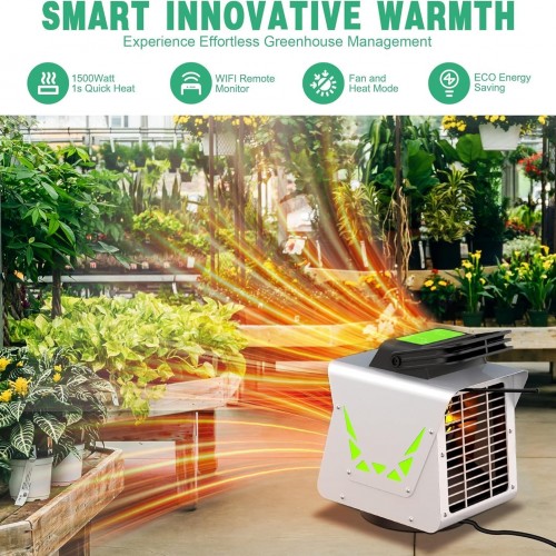- Heating and Fan Modes: Two Operating Modes for All Seasons During the winter, our greenhouse heater with thermostat provides warmth and elevates the temperature within the greenhouse, protecting plants from the damaging effects of cold weather. In the heat of summer, switch to fan mode for a comfortable breeze that promotes air circulation and reduces the temperature inside the greenhouse. Enjoy the versatility of two working modes for year-round comfort and plant protection