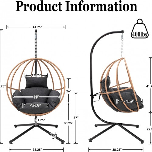 - Stable Metal Frame: This Hanging egg swing chair is constructed with a powder-coated steel frame for enhanced durability and rust resistance. The four-legged base design ensures excellent stability and prevents tipping during use
