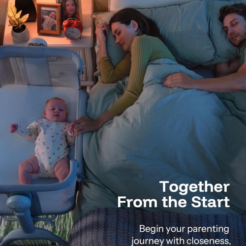 HARPPA Cuddly Baby Bassinet Bedside Sleeper, 3 in 1 Rocking Bassinet with Mattress and Soft Cover, Full Mesh Sides, 5 Height Adjustable with Wheels for Newborns, Grey