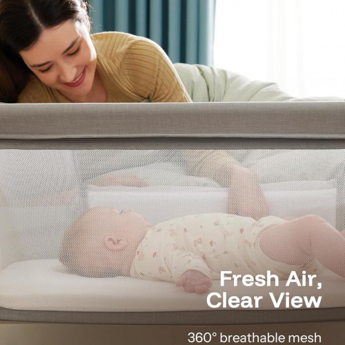 - Breathable Mesh: For safety and comfort, baby bassinet features a full breathable mesh design, mesh sides provide open airflow and clear view of your baby