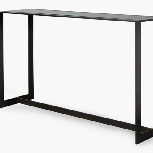 Our Hawthorn Black Glass Console Table has an open black u-leg iron base and offers clean angular lines. Our handcrafted finishes are inspired by variations within natural textures. Each selection is slightly unique.