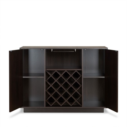 - Elegant Design: The Hazen Espresso Finish Wine Cabinet features a sleek rectangular design that complements any modern dining or living space, combining style with functionality for a sophisticated look.