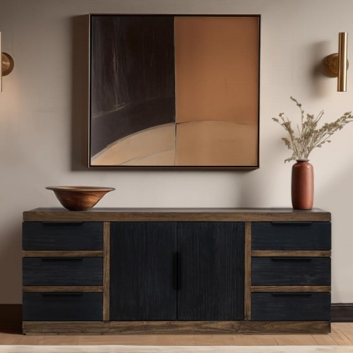 Beautiful cozy fireplace from the Helena collection. Made of mango and parota wood. Fall is right around the corner and you will need this modern fireplace to stay warm. Use it also for your tv stand. Handcrafted with a multi-step lacquer that will show the natural wood grain.